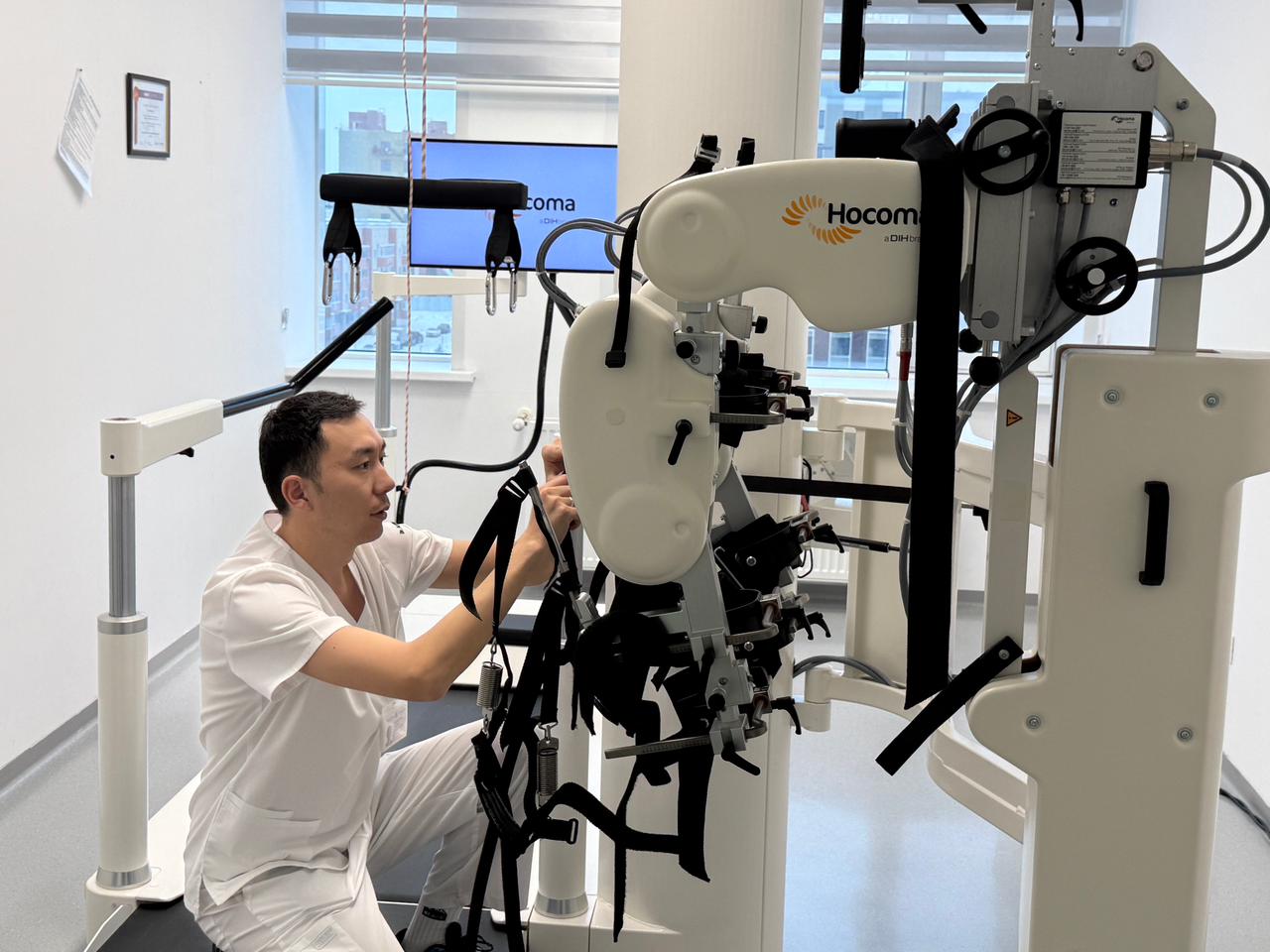 В Больнице МЦ УДП РК применяются современные роботизированные технологии. Аппарат Lokomat используется для восстановления навыков ходьбы, тренажёры Amadeo и Gloreha – для разработки движений кисти и верхних конечностей. Эти системы особенно эффективны при выраженных двигательных нарушениях, так как позволяют безопасно формировать движения и отслеживать динамику восстановления. В дальнейшем в Центре планируется развивать раннее начало реабилитации, расширять технологические возможности и внедрять современные методики, включая Mulligan и PNF, с акцентом на возвращение пациента к активной и самостоятельной жизни.