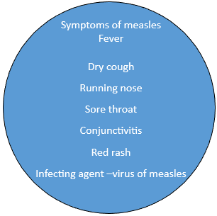 First signs: general malaise, fever, headaches, running nose, sore throat, photophobia, red eyes, conjunctivitis, cough.