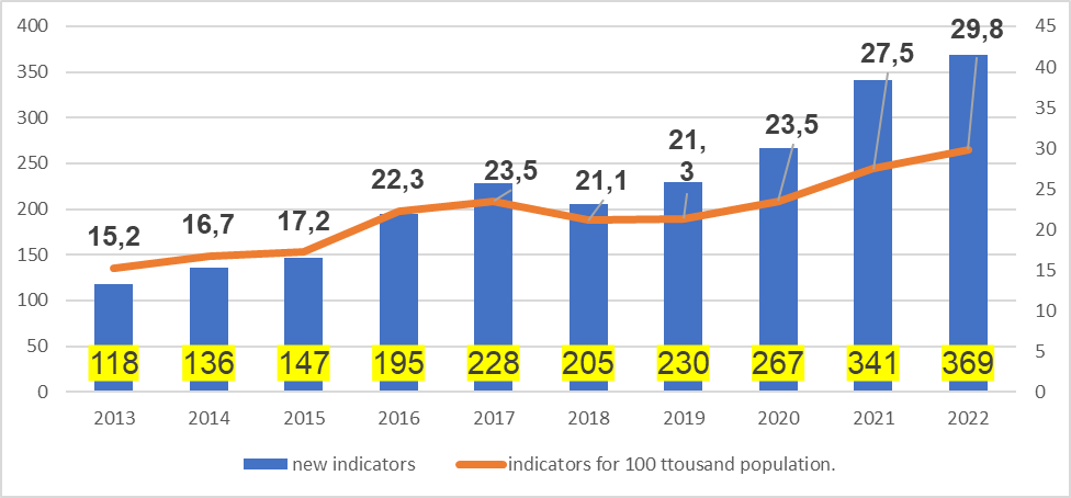 Epidemiological situation on HIV infection in Astana in dynamics by years