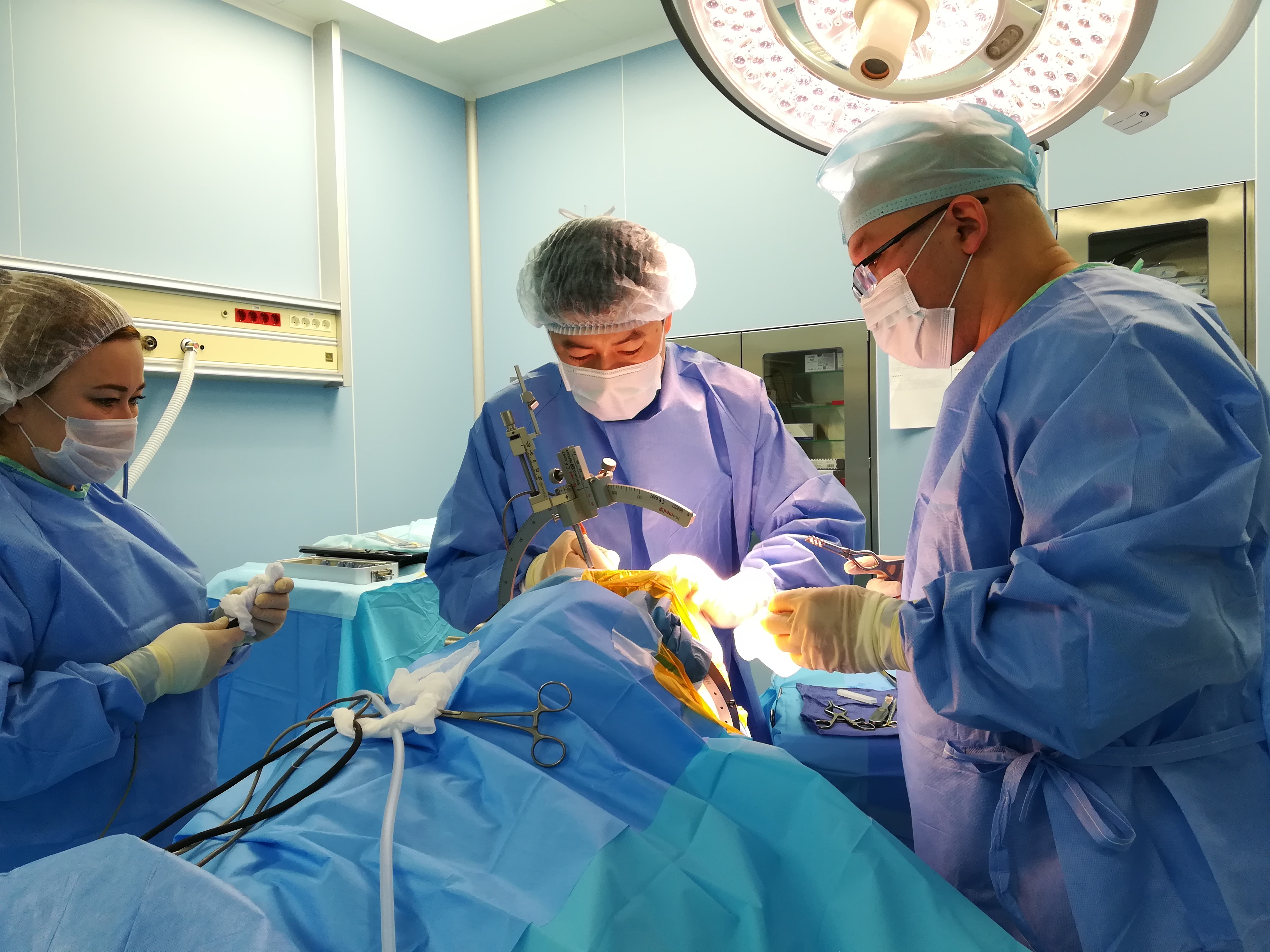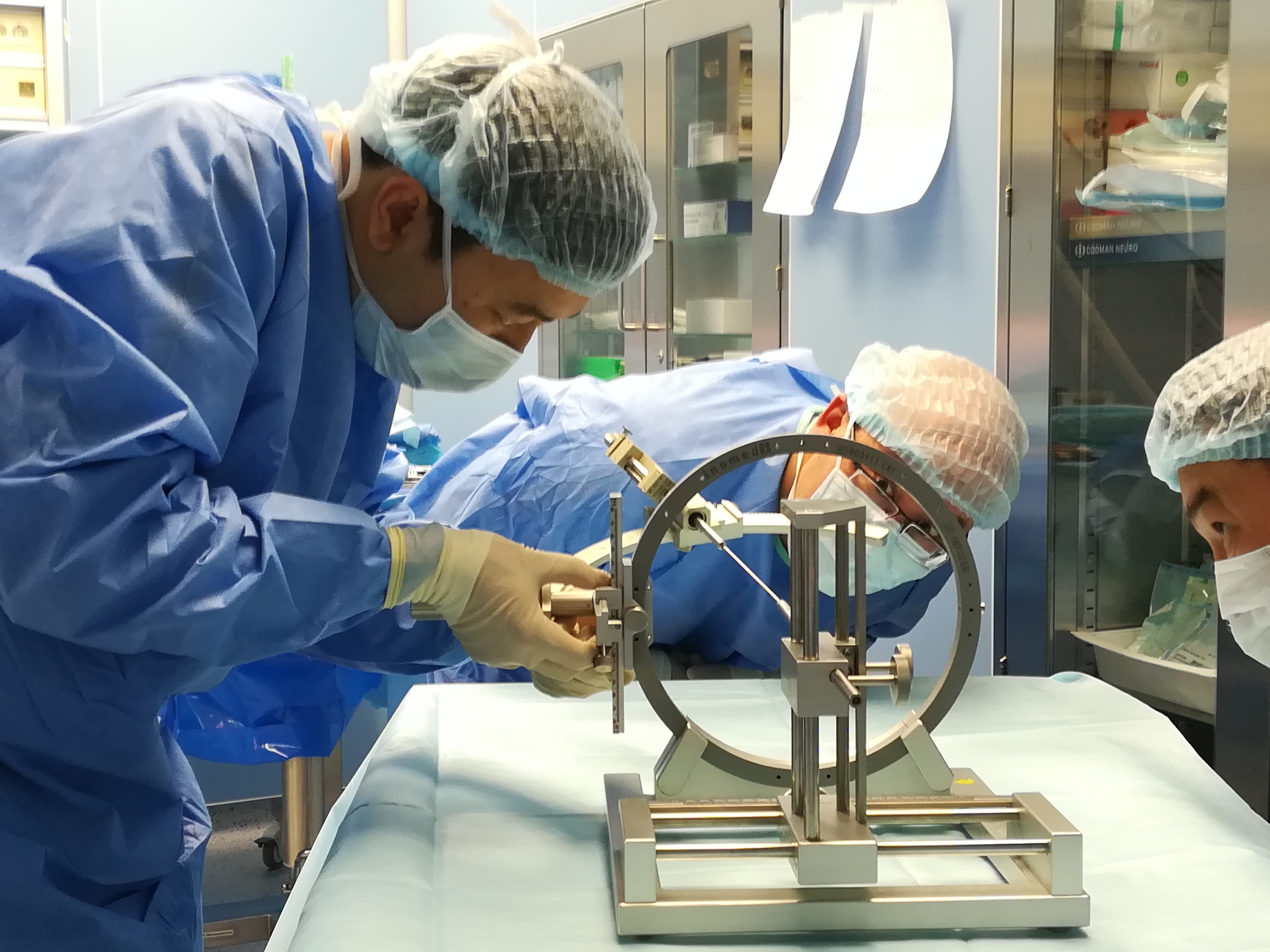Дәрігерлер командасы миды терең ынталандыру үшін стереотаксикалық жүйені қолдана отырып, қозғалыс бұзылыстарын хирургиялық емдеу тәжірибесін үздіксіз арттырады.