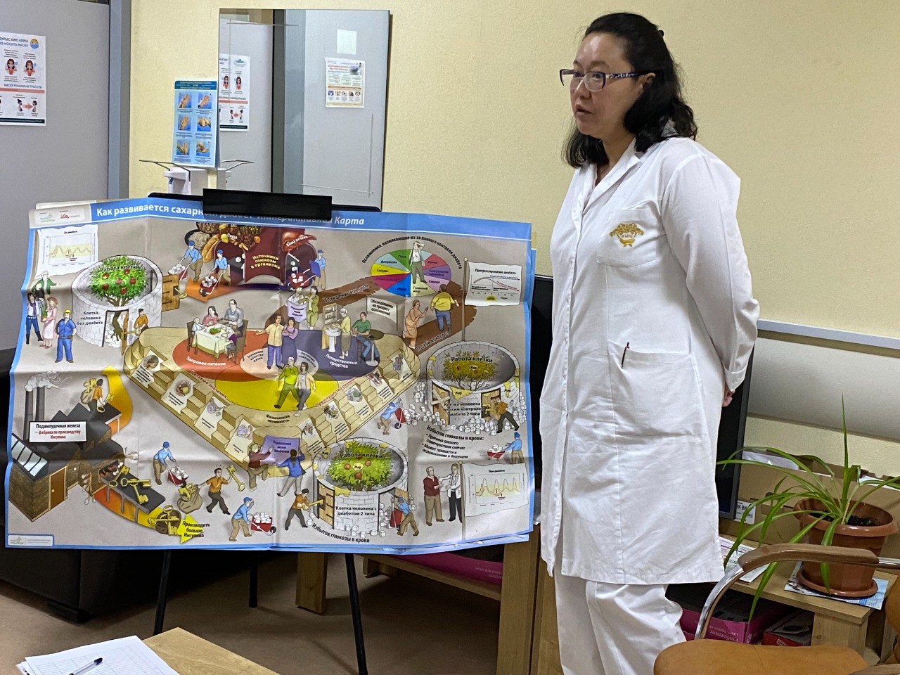 Жыл сайынғы қант диабетімен күрес күні аясында 14 қарашада Салауатты өмір салтын қалыптастыру орталығында Абдрахманова Ж.Т. эндокринолог дәрігерінің қатысуымен қауіп факторлары бар науқастарға, сондай-ақ қант диабетімен ауыратындарға арналған Денсаулық мектебі өткізілді.