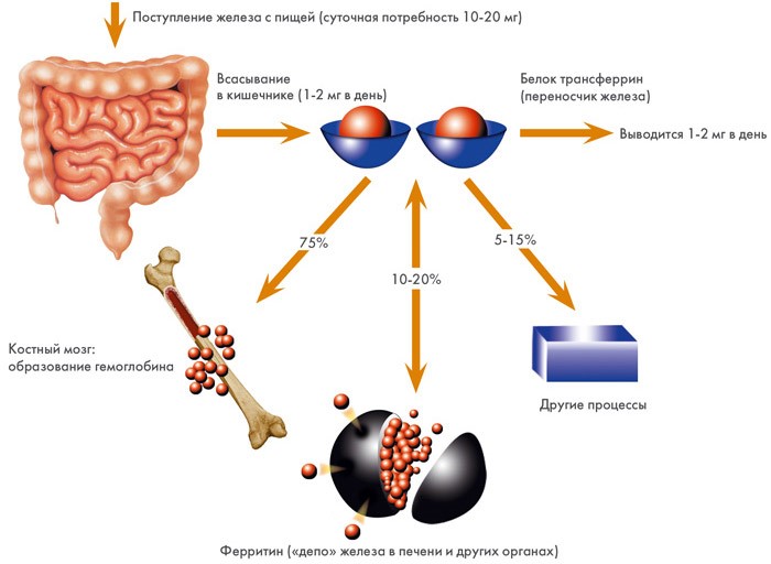 Железодефицитная анемия (ЖДА) наиболее часто встречающаяся форма из всех ныне известных анемий, что обусловлено большим количеством причин и обстоятельств, способных привести к недостатку железа, который повлечет различные небезопасные для организма нарушения. Самой частой формой анемии является ЖДА в силу того, что наш организм вообще не способен синтезировать этот химический элемент и, кроме как из продуктов животного происхождения, нам взять его больше негде. Всасывается железо в 12-перстной кишке и немного по ходу тонкого кишечника. С толстой кишкой оно ни в какое взаимодействие не вступает и на нее не реагирует, поэтому, оказавшись там, проходит транзитом и выводится из организма. Кстати, можно не волноваться, что употребляя много железа с пищей, мы можем его «переесть» – у человека есть специальные механизмы, которые своевременно остановят усвоение лишнего железа.