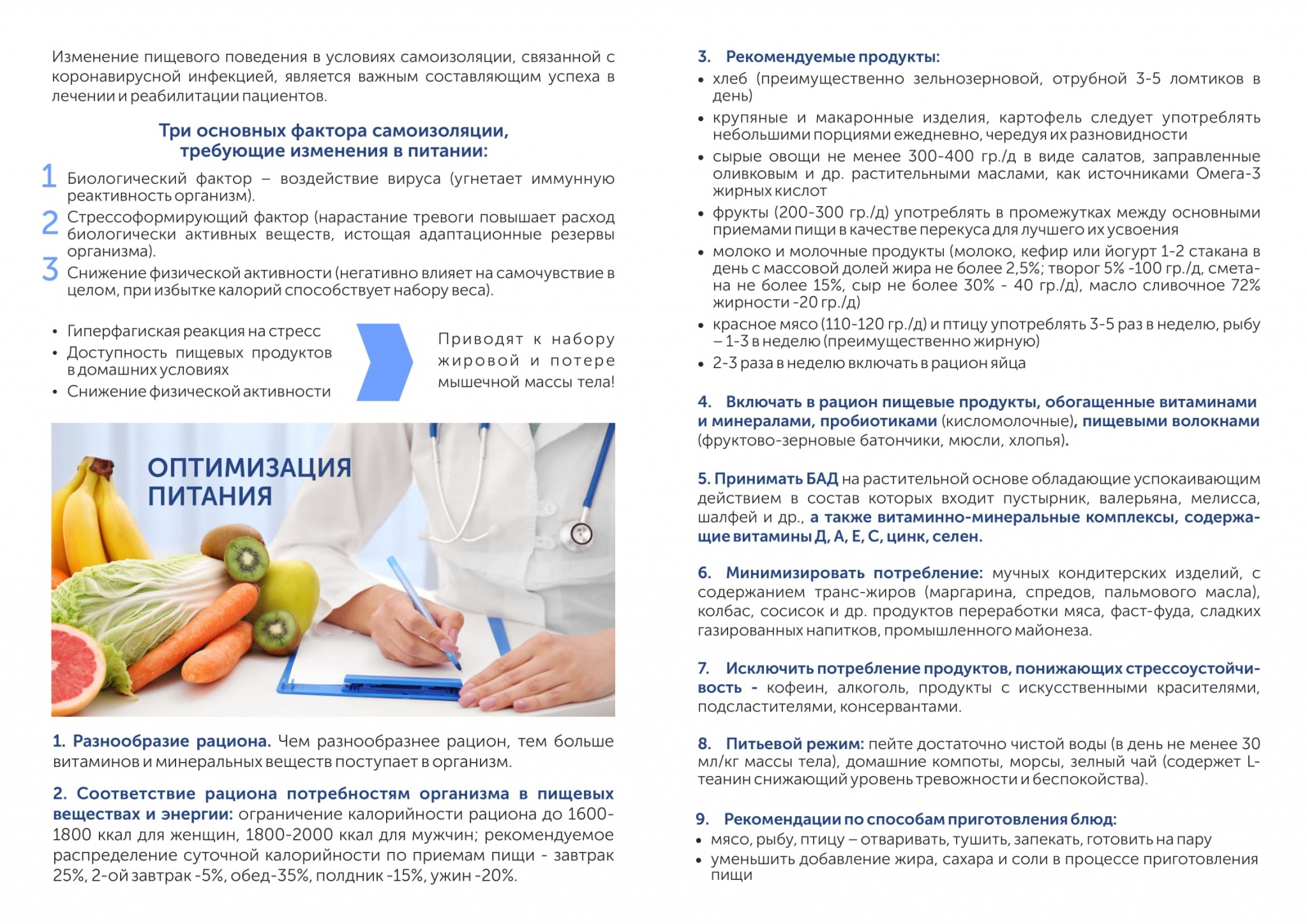Изменение пищевого поведения в условиях самоизоляции, связанной с коронавирусной инфекцией, является важным составляющим успеха в лечении и реабилитации пациентов.