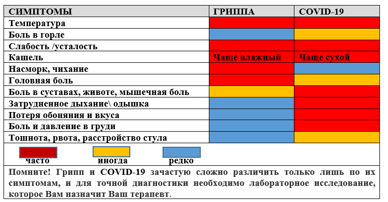 КЛИНИЧЕСКИЕ СИМПТОМЫ ГРИППА И COVID-19.